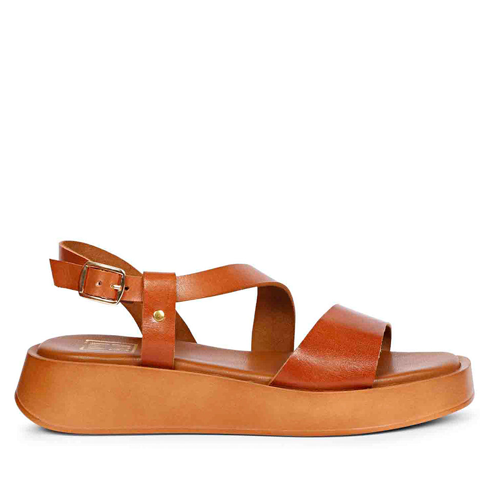 Elara Tan Leather Platform Sandals